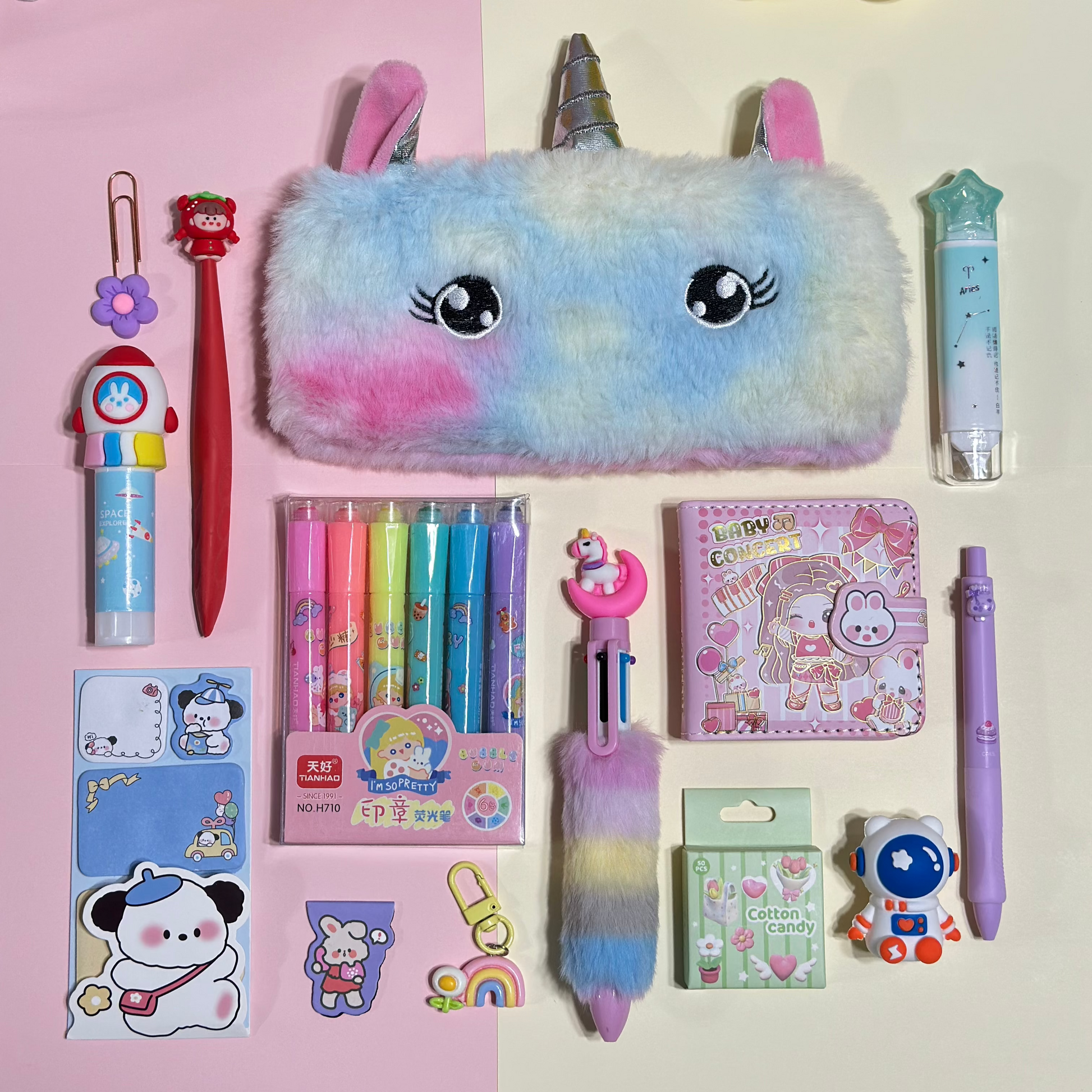 Experience the best of our store with the Adoraboo Mystery Bundle. Featuring a curated selection of our top products, this bundle is the perfect way to try a variety of items and discover your new favorites. Treat yourself or give as a gift to a friend, either way, you won't be disappointed! This Adoraboo Box Mystery Bundle includes our best collection of stationery products like Pens, Pencils, Books, Journals, Erasers, Sharpeners, Rulers, Sticky notes, Planners, Bookmarks, Paper Clips, Markers, Highlighters, Correction tapes, Glue, Fidget toys, Puzzles, Key chains and more.