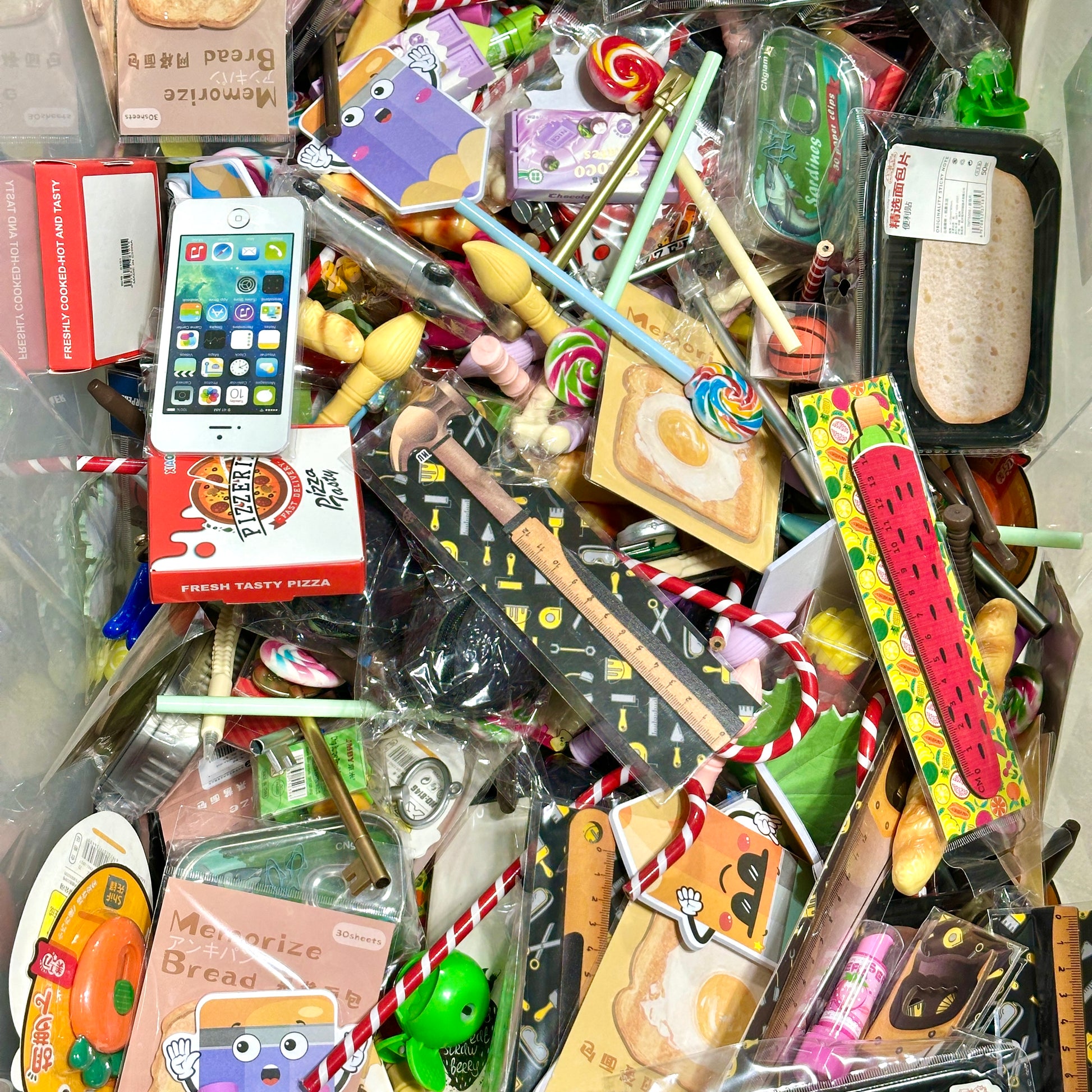 Items in the scoop may include : pens, pencils, sharpeners, erasers, rulers, correction tapes, washi tapes, stickers, notebooks, sticky note pads, memo pads, paper clips, hole punchers, stamps, box cutters etc.,